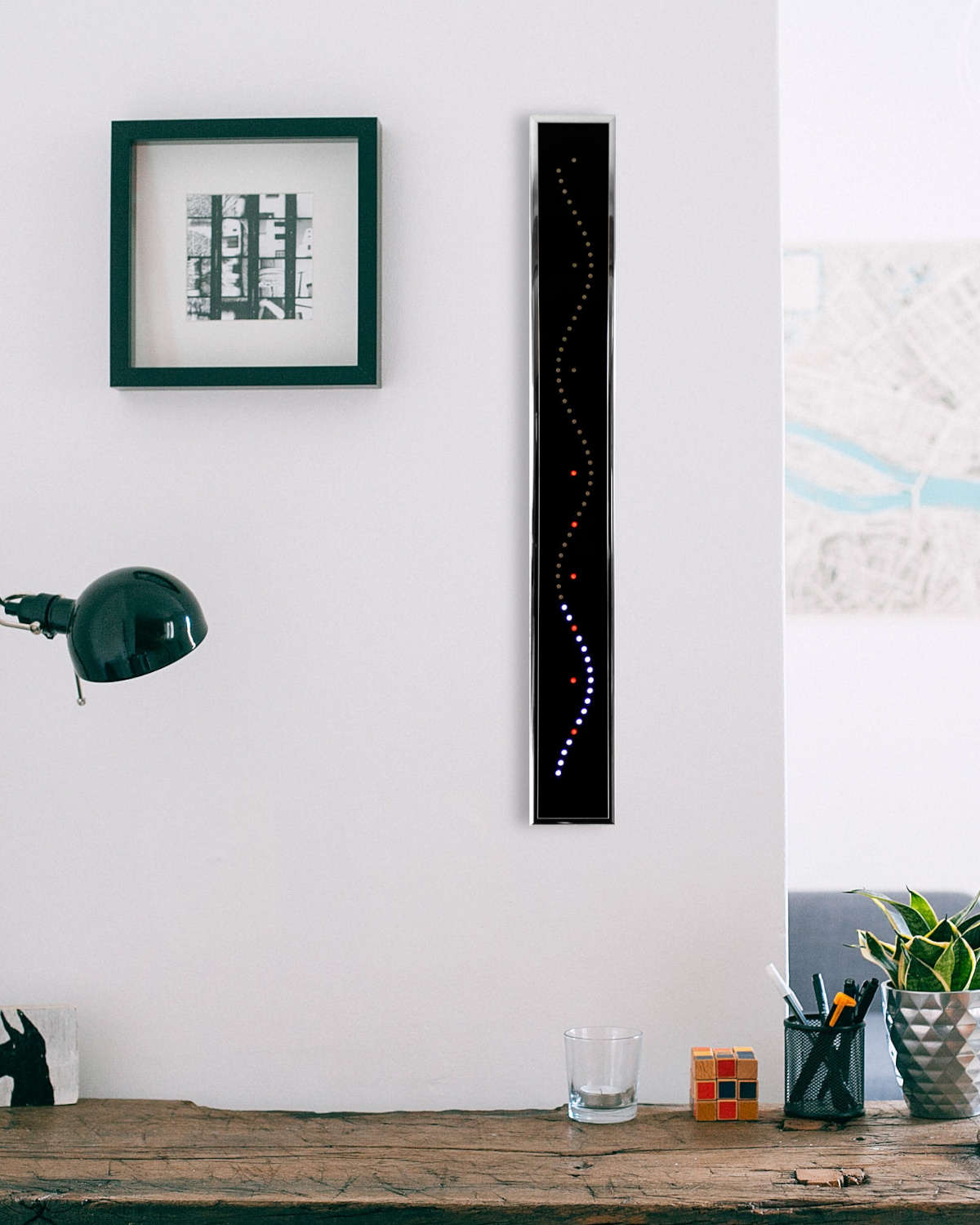 Drop-A-Min macht Ihr Leben schöner! Auf den ersten Blick nicht als Uhr zu erkennen, zieht sie den Betrachter in den Bann wie ein Kunstwerk. Und jede neue Minute wird durch einen optische Effekt besonders gewürdigt. Genießen Sie den Fluss der Zeit – ohne Zeiger, ohne Ziffern, ohne Worte.